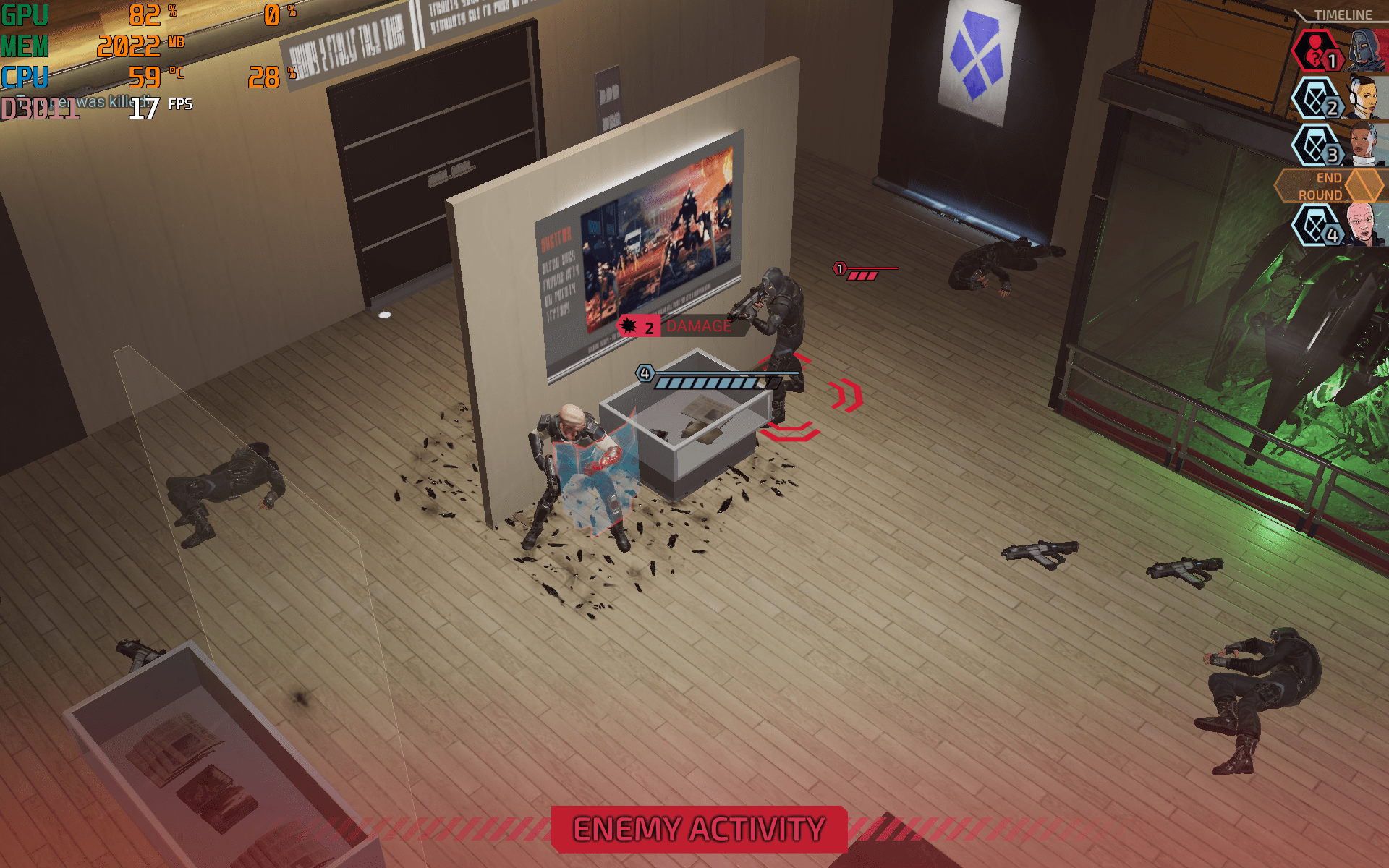 As expected, modern titles like XCOM: Chimera Squad is too much for the integrated graphics to handle even at minimum detail level, hovering with an average fps of 21 most of the time. Some scenes can even drop the framerates down to the mid-teens making it barely playable even for a turn-based game. On a good day, you can still see upwards of 30fps during in-game cutscenes or transitions though.